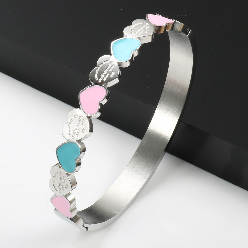 New Fashion Three-color Heart-shaped Bracelet Titanium Steel 18K Gold Plating College Style Female Bracelet